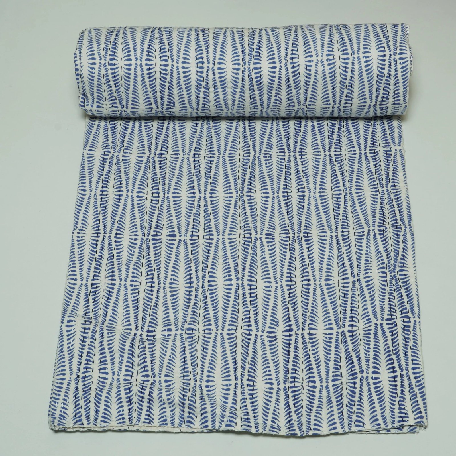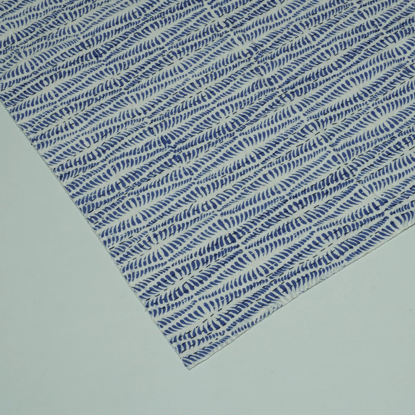 Blue Block Print Kantha Fabric – Handmade Cotton Quilt MaterialSoft, lightweight, artisan-stitched material perfect for quilting, bedding, and home décor.