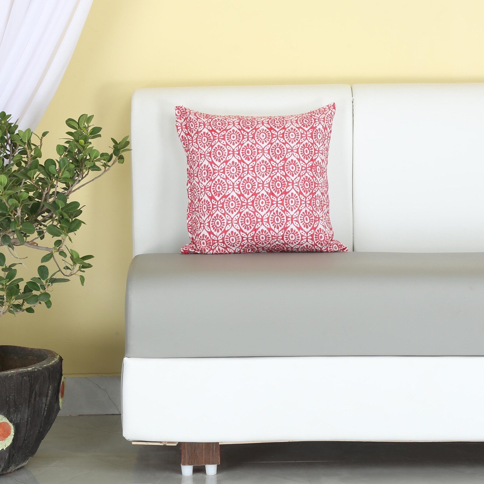 Handmade Pink Floral Cotton Cushion Cover– Block Print Add timeless charm to your home with this handcrafted Jaipuri cushion cover. Featuring a detailed floral block print on soft cotton fabric, it blends traditional Indian craftsmanship with modern elegance. Ideal for sofas, beds, or chairs, this pillow cover brings warmth and style to any room.