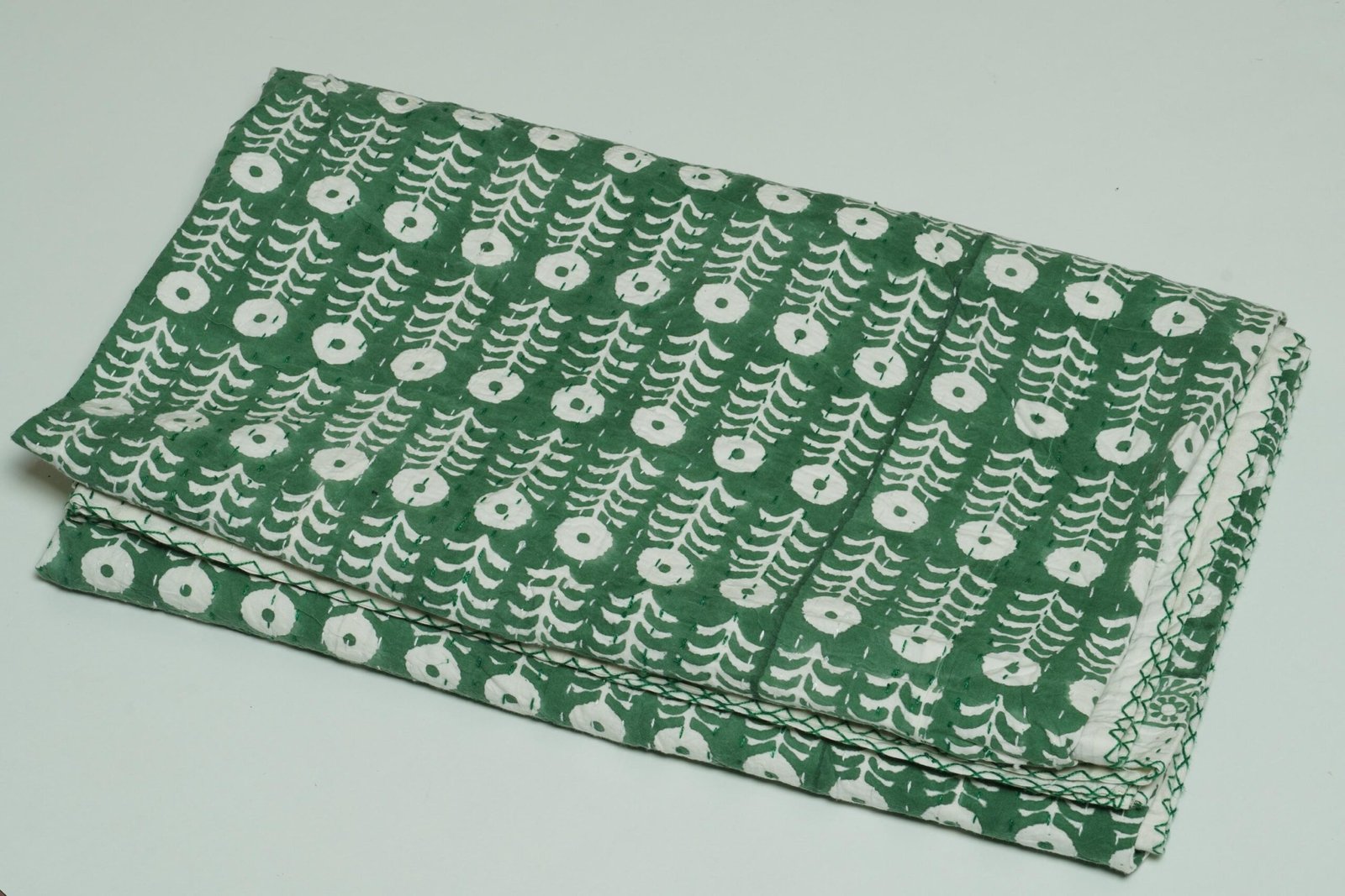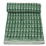 Green Block Print Pure Cotton Indian Kantha Quilt