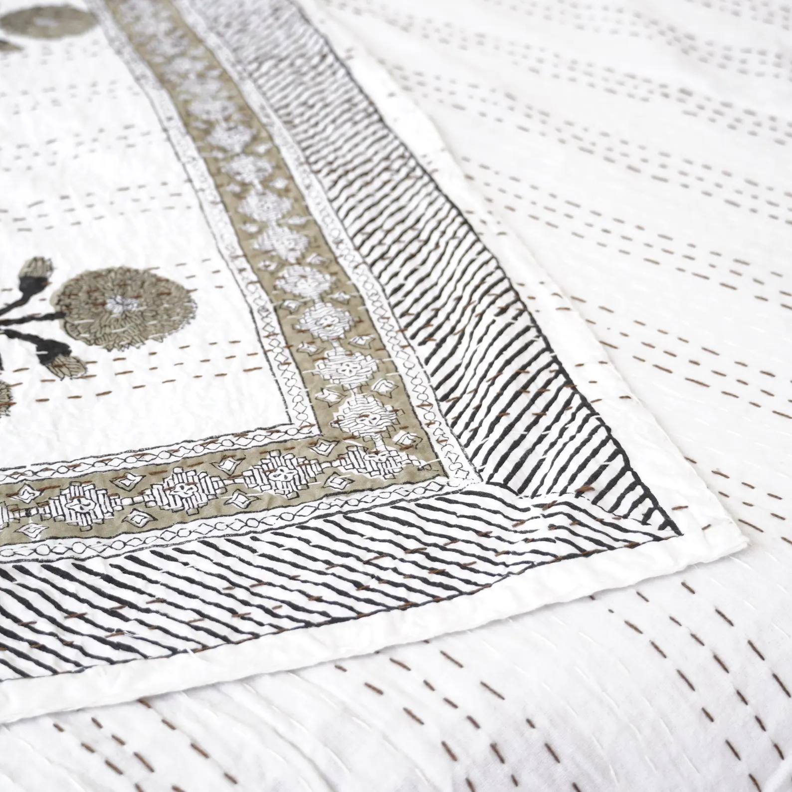 Experience true craftsmanship with our Black Floral Kantha Quilt handmade block print Kantha quilt,