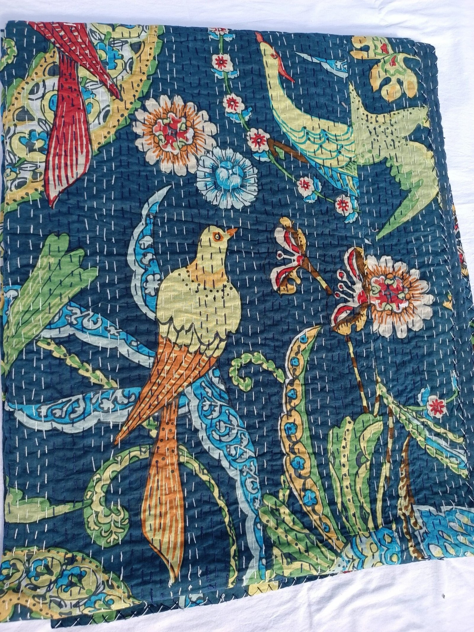 2. Traditional Kantha stitching – Made with two layers of cotton quilted together using fine Kantha stitches, creating a unique textured look.