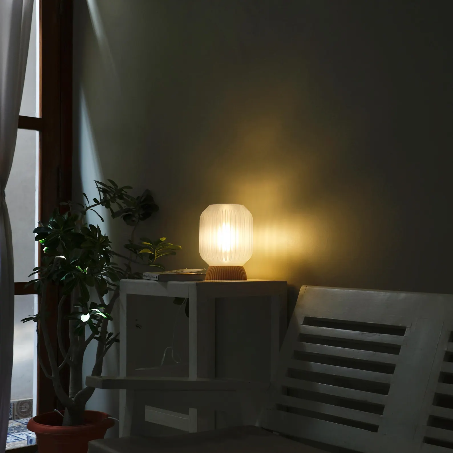 Ideal for bedside tables, workspaces, or living rooms, this modern lamp serves as both a practical lighting solution and a stylish decorative piece, offering the perfect balance between form and function. The 3D-printed PLA material also reflects a commitment to sustainability, aligning with eco-friendly design trends.