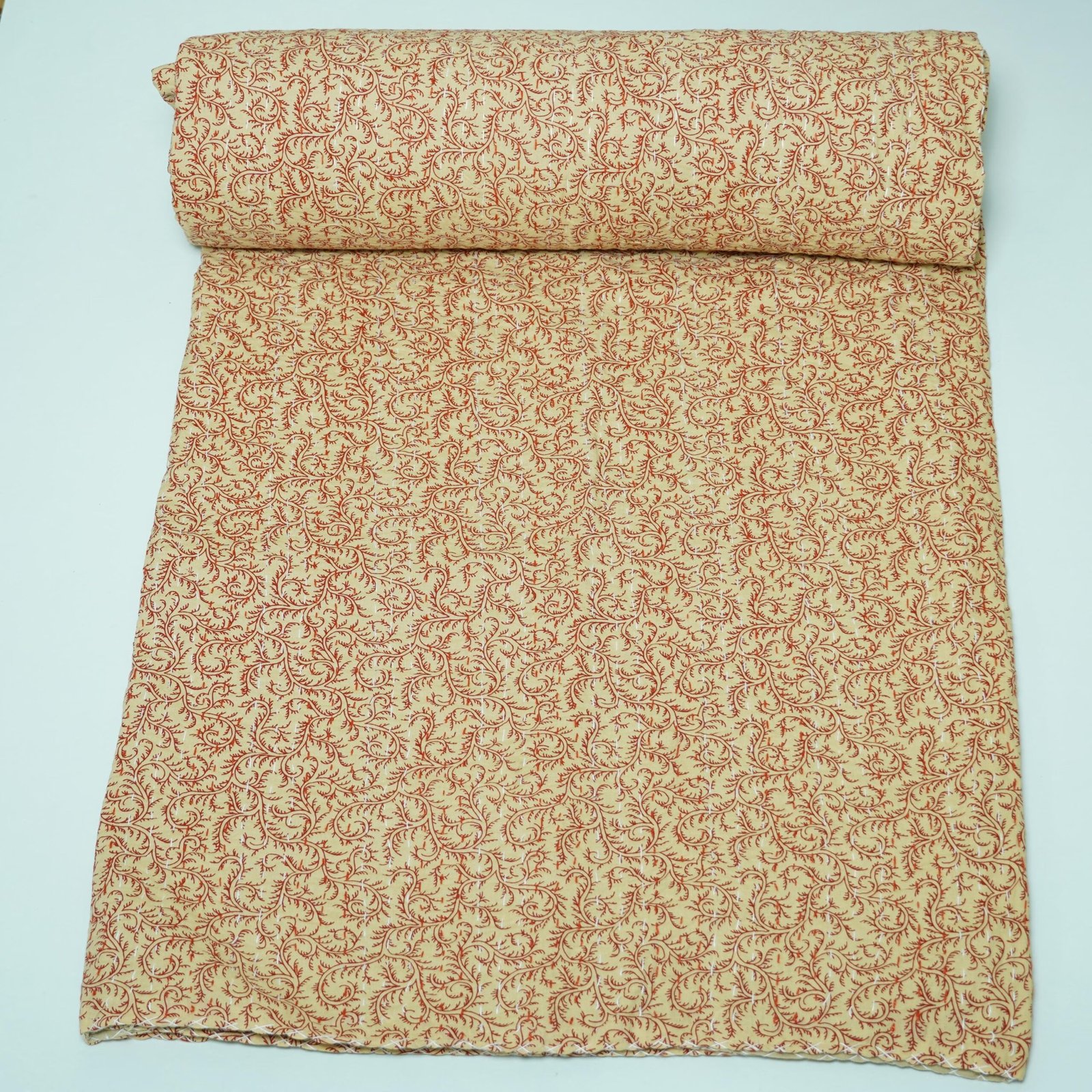 2. Traditional Kantha stitching – Made with two layers of cotton quilted together using fine Kantha stitches, creating a unique textured look.