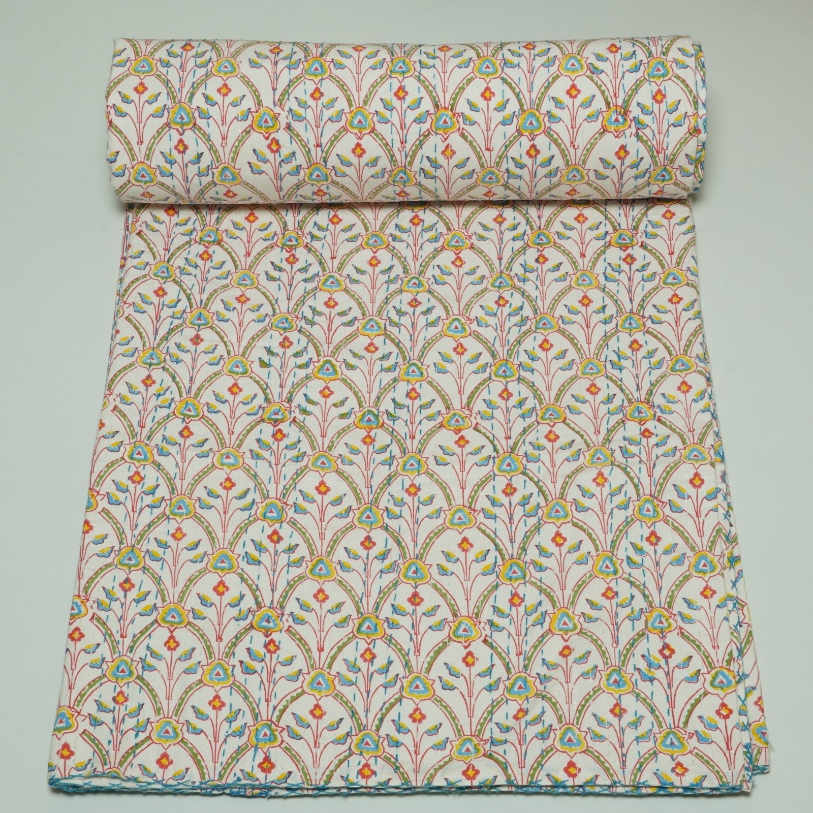 2. Traditional Kantha stitching – Made with two layers of cotton quilted together using fine Kantha stitches, creating a unique textured look.